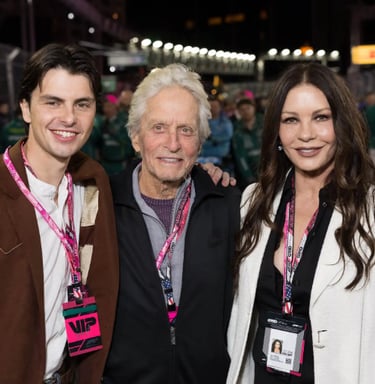 Michael Douglas, Catherine Zeta-Jones and their son Dylan Douglas attended the F1 Las Vegas Grand Prix at the Las Vegas Strip Circuit.
