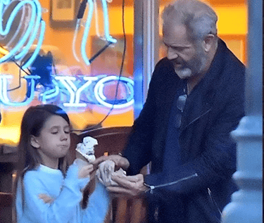 The movie Braveheart, directed by and starring Mel Gibson, is "At the Ice Cream Parlor with His Daughter." The famous actor conquered hearts once again.