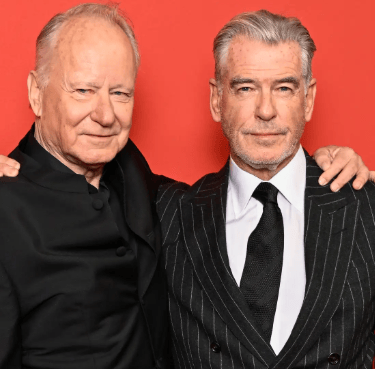 Look how dapper! Former costars Stellan Skarsgård and Pierce Brosnan charm on the carpet at GQ's Men of the Year Awards in London on Nov. 18.