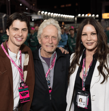 Michael Douglas, Catherine Zeta-Jones and their son Dylan Douglas attended the F1 Las Vegas Grand Prix at the Las Vegas Strip Circuit.