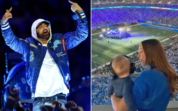 Eminem' i Kızı Hailie Jade, Oğlu Elliot'un Şükran Günü Devre Arası Gösterisinde Büyükbabasının Performansını izlemeye geldiler.