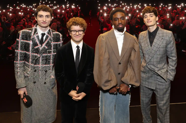 Stranger Things cast members Finn Wolfhard, Gaten Matarazzo, Caleb McLaughlin, and Noah Schnapp attended the series' season 5 event in Berlin.