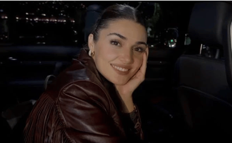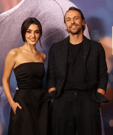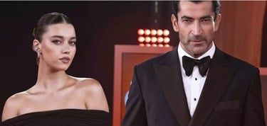 Hande Erçel is at the Gala. She is preparing to appear before the audience in the film "Two Worlds, One Wish," starring alongside Metin Akdülger.