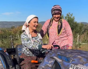 Nurgül Yeşilçay, who also harvested olives, later used a tractor. Footage of the famous actress from the village quickly became a trending topic on social media.